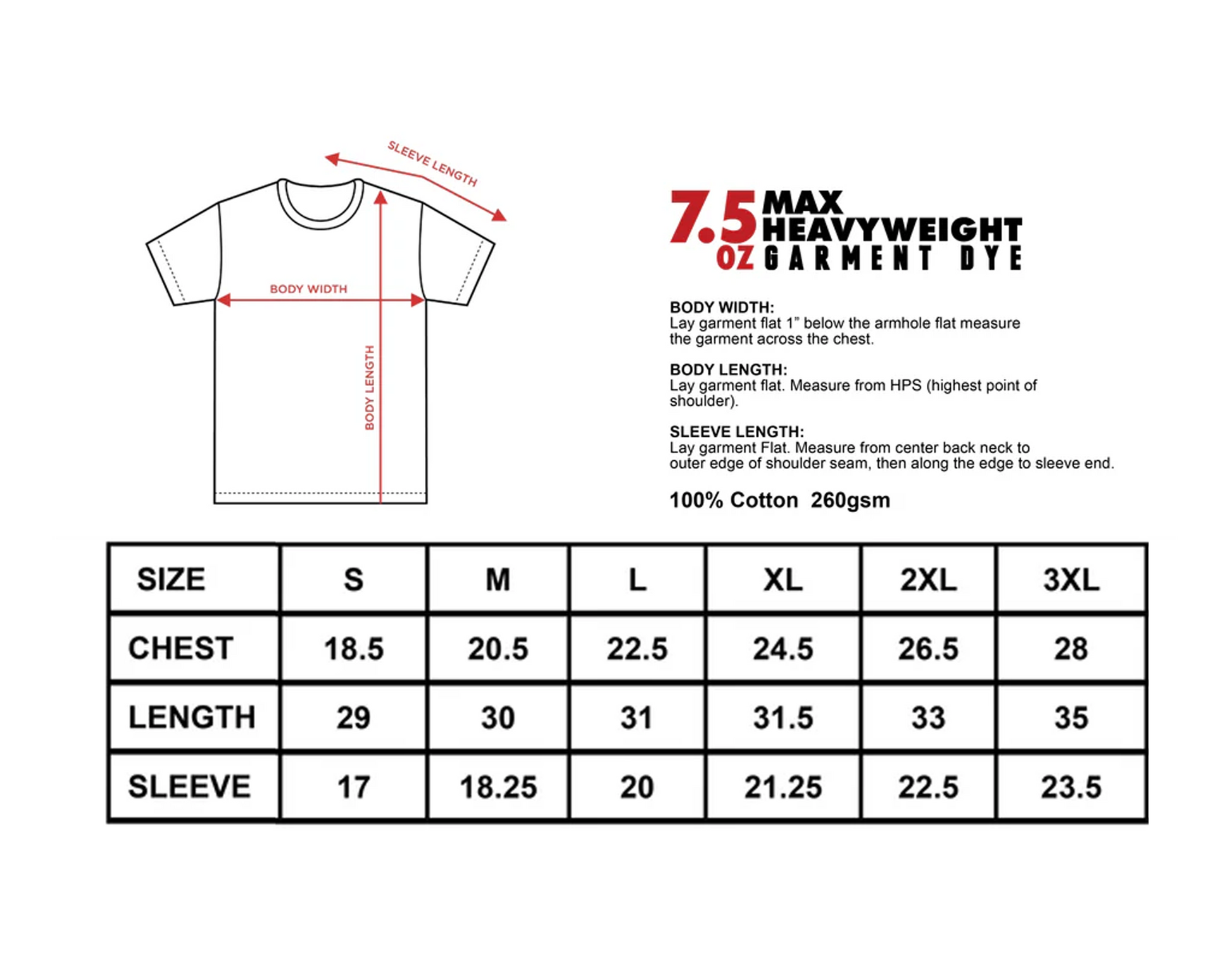 Bringing you the heaviest garment dye in the industry. These Shrink-free washed out Max Heavyweight Tees are Pigment / Reactive-washed for a vintage look. Oversized fit and densely knit for clean printing. Perfect for any occasion.